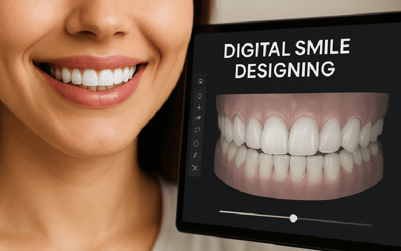 Digital Smile Designing is an advanced aesthetic planning tool that allows clinicians to digitally design and visualize a patient’s smile before beginning any treatment. Using high-resolution photographs, facial scans, and specialized software, the new smile is created in harmony with the patient’s facial features and personality.
