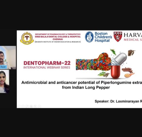 A guest lecture on “Antimicrobial and Anticancer Potential of Piperlongumine Extracted from Indian Long Pepper” was organized on 24th September 2022. The session was delivered by Dr. Laxminarayan Rawat, Post-Doctoral Research Fellow in the Division of Nephrology, Boston Children’s Hospital and Harvard Medical School, USA. The lecture highlighted the therapeutic properties of piperlongumine, focusing on its antimicrobial action and anticancer potential. Participants gained valuable insights into the scientific basis of traditional plant-derived compounds and their relevance in modern biomedical research. The event was organized by Dr. Sumathi Jones, Head of the Department of Pharmacology.