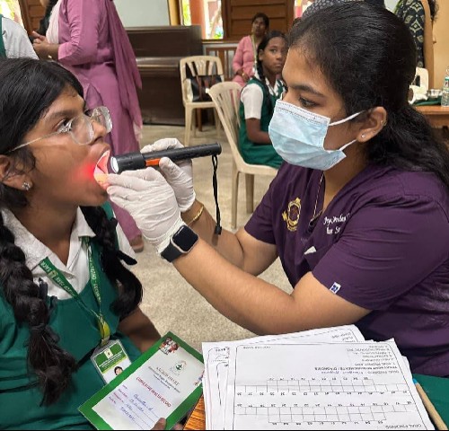 Individual oral health reports and necessary referrals were provided for students requiring further treatment. The programme successfully enhanced awareness about early diagnosis and preventive dental care, reinforcing the institution’s commitment to community outreach and school-based oral health education in Chennai.