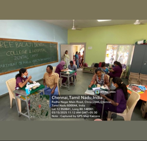 On 15 March 2025, Sree Balaji Dental College & Hospital conducted a community dental health outreach programme in association with the Tambaram City Municipal Corporation at Chrompet. The initiative was organized to promote preventive dentistry, improve public oral health awareness, and provide accessible dental screening services to the local community.