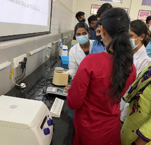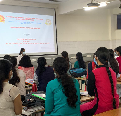 A hands-on workshop titled “Gene Expression using Real-Time PCR” was conducted on 10th December 2021. A total of 44 participants, including UG and PG students and faculty members from SBDCH, as well as staff and students from Ethiraj College for Women and Mohamed Sathak College for Arts and Science for Women, participated in the event.