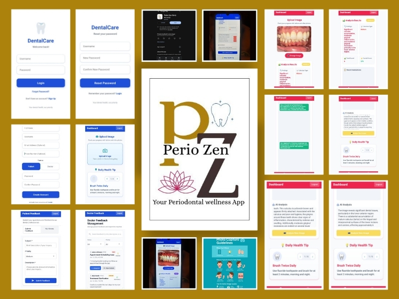 PerioZen is an innovative, AI-powered mobile application designed exclusively for periodontal health monitoring and management. By using the smartphone camera, the app can identify calculus deposits, extrinsic stains, gingival recession, and gingival abscesses, gingival inflammation—all early indicators of periodontal disease. It empowers users through real-time visual diagnostics, educational feedback, and referral prompts to visit a periodontist. PerioZen bridges the gap between home awareness and clinical care, bringing periodontal support directly to the hands of both patients and professionals.