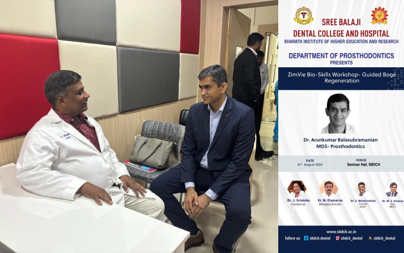 The Department of Prosthodontics organized the ZimVie Bio-Skills Workshop on Guided Bone Regeneration on 21 August 2024 at the Seminar Hall, SBDCH. The session was led by Dr. Arunkumar Balasubramanian, MDS-Prosthodontics, who provided in-depth insights into advanced bone regeneration techniques. The workshop featured engaging lectures, live demonstrations, and hands-on training, enabling participants to strengthen their clinical knowledge and surgical skills. Postgraduates, faculty, and practitioners actively took part, making the event highly interactive and enriching.
